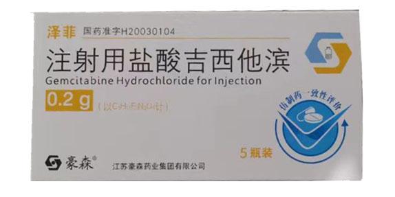 产品名称 泽菲 通用名:注射用盐酸吉西他滨 剂型:注射剂/盒 零售价:365.00元/盒 生产企业:江苏豪森药业集团有限公司 |