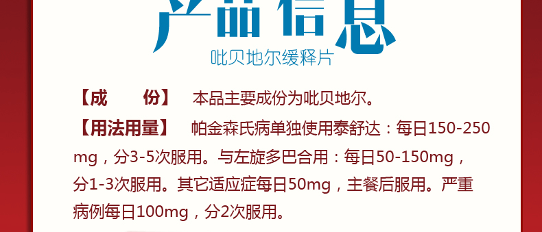 请仔细阅读(泰舒达 吡贝地尔缓释片 50mg*30片)的作用说明,并在药师指导下购买和使用。