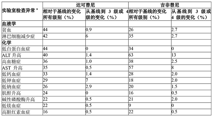 b达可替尼组有1例5级(致命的)事件。