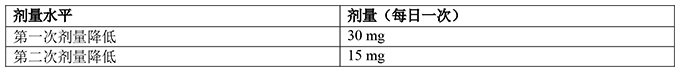 如果出现不良反应,按照表1中所述降低本品的剂量。表2提供了针对特定不良反应的剂量调整。